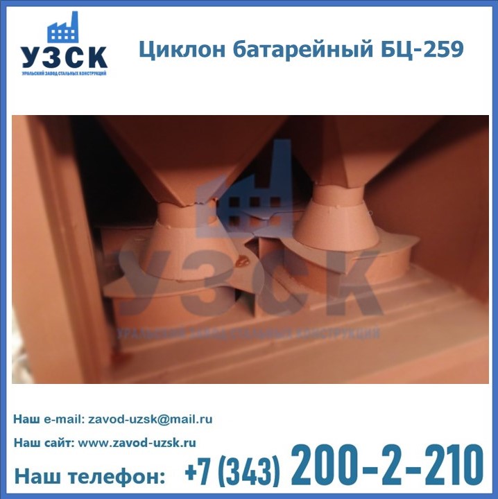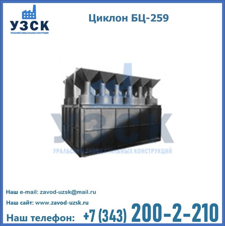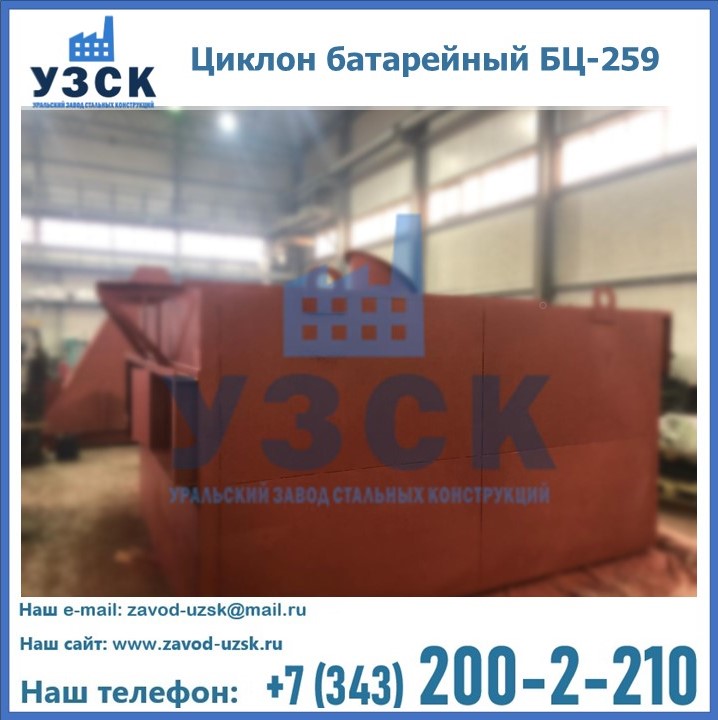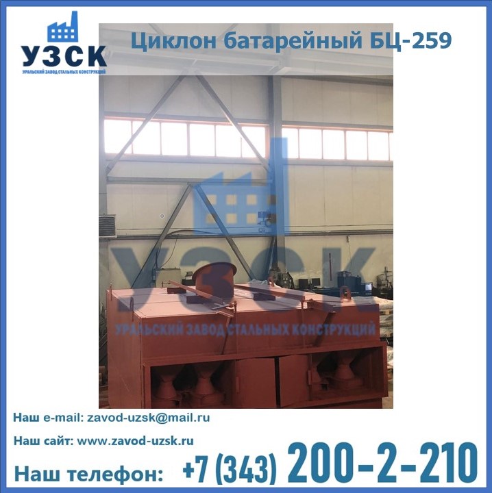 Приобрести качественное оборудование, в том числе, циклоны БЦ-259, можно в компании УЗСК в Владимире. Мы предлагаем долговечную и надежную продукцию по приемлемой цене. Заказать и купить циклоны или другие изделия высокого качества можно через сайт Уральского Завода Стальных Конструкций, или позвонив по указанному в разделе «Контакты» телефону.