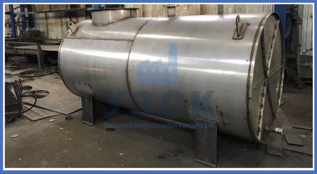 Баки питательные могут иметь конфигурацию, позволяющую занять свободное место. Емкость может быть цилиндрической, эллипсоидной, с гранями, установлена горизонтально или вертикально. Питательный бак из нержавеющей стали должен иметь все патрубки с фланцами для присоединения коммуникаций, дренаж и люк для внутреннего осмотра.